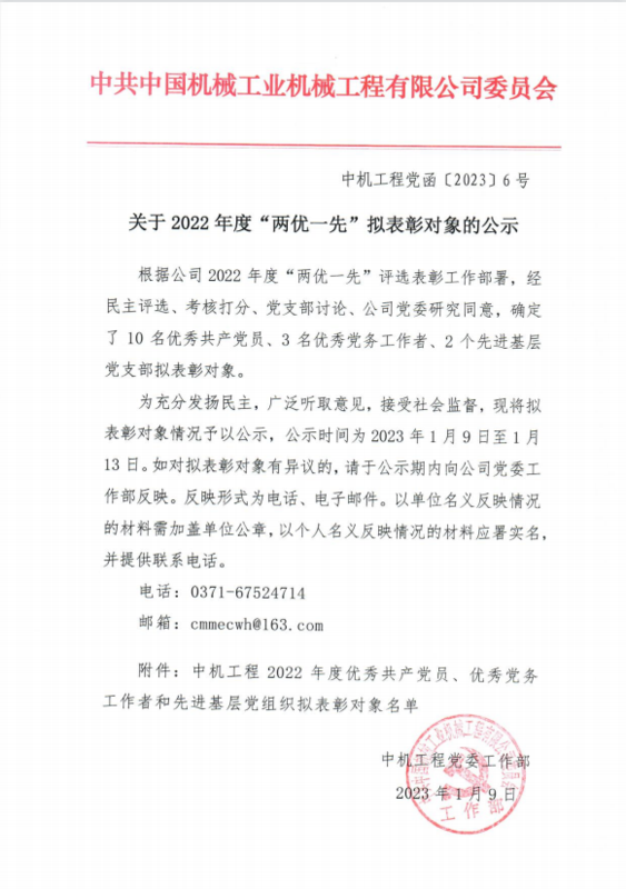 關(guān)于2022年度“兩優(yōu)一先”擬表彰對象的公示